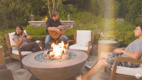 It’s easy to create a custom backyard camp ground for a night (or summer) under the stars. To start, pitch a tent on your pristine artificial turf. Next, fire up the built in grill and get those hotdogs cookin’. You’ll also want to kick on the fire pit and break out the smore ingredients to enjoy over campfire stories later. Last, outdoor lighting provides ample light for night time games like night time capture the flag, lawn bowling, or cornhole. You can also opt for turning those energy efficient LED’s off and bringing out the telescope for some late-night stargazing.