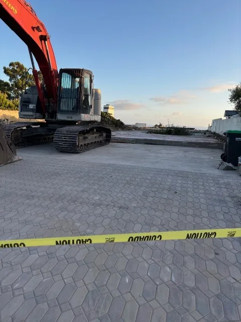 The house, which had stood there for decades, was completely demolished. To do this work, a massive machine was brought in—one capable of tearing down entire walls and roofs with ease. Over the next few days, it drove back and forth across the 20-year-old paver driveway, hauling out debris and loading it into huge dump trucks that were parked on it. The demolition process was rigorous, and heavy machinery and constant pressure was applied to the driveway the entire time.